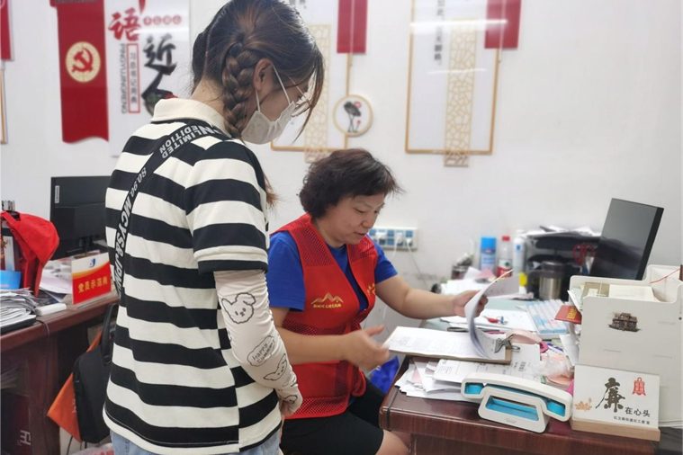 团队成员与社区工作人员调研“双减”相关政策和落实情况