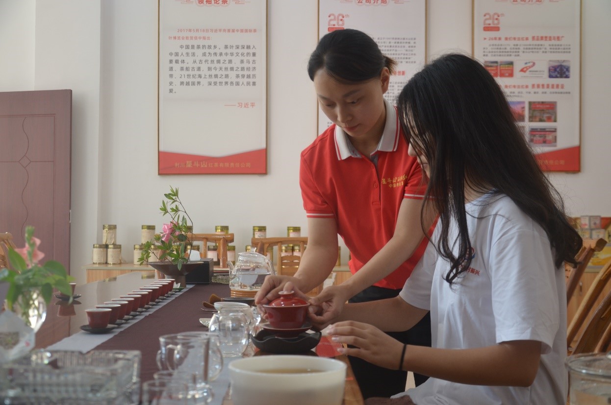 团队成员在利川星斗山红茶有限责任公司实地考察,学习泡茶艺术