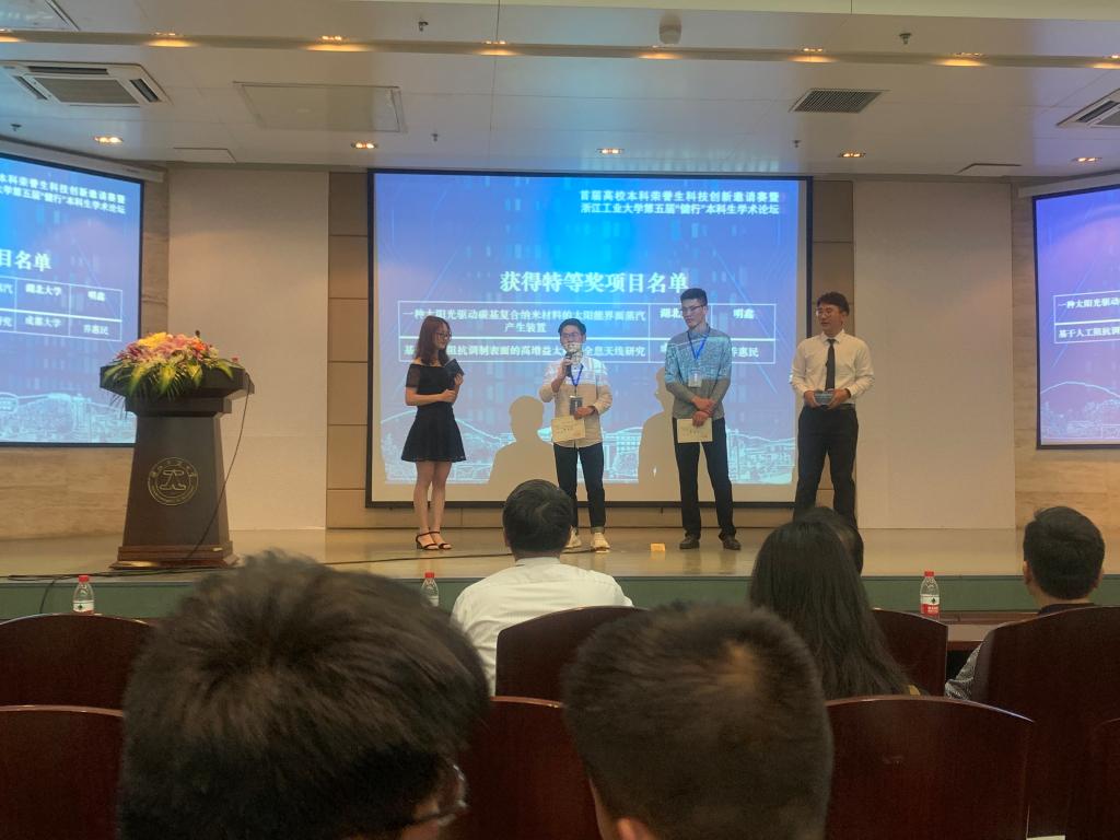 511-12日,首届高校本科荣誉生科技创新邀请赛在浙江工业大学举行,公司受邀参加,3项参赛项目全部获奖,其中特等奖一项、三等奖两项。